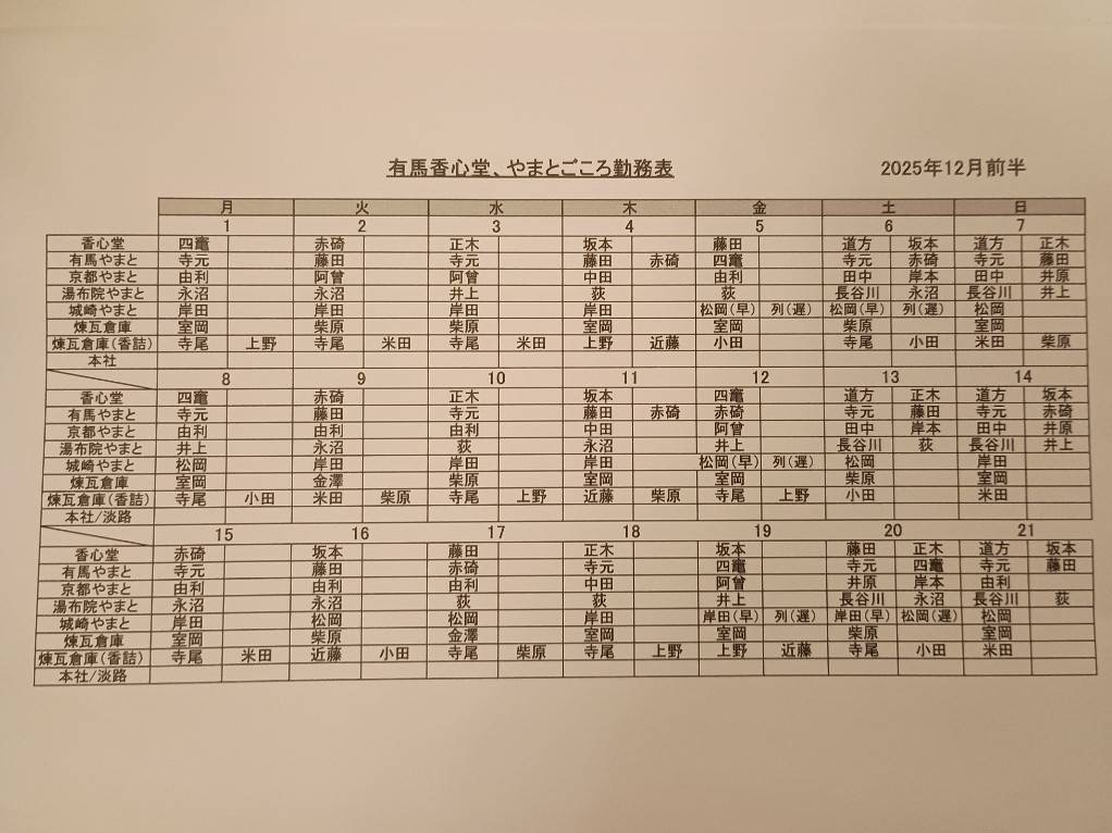 2025年12月後半 シフト