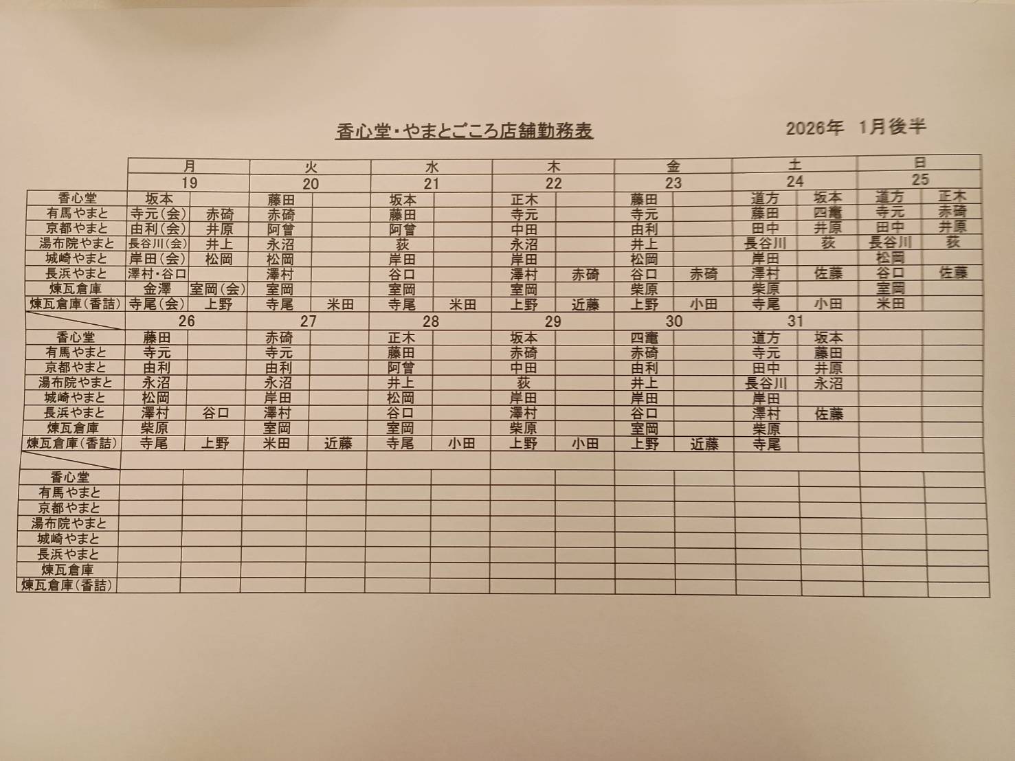2026年1月 シフト(川越・表参道)