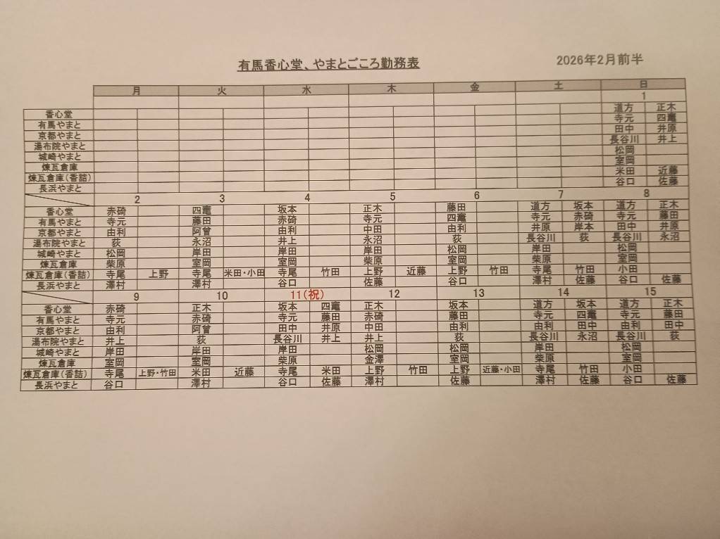 2026年2月前半 シフト