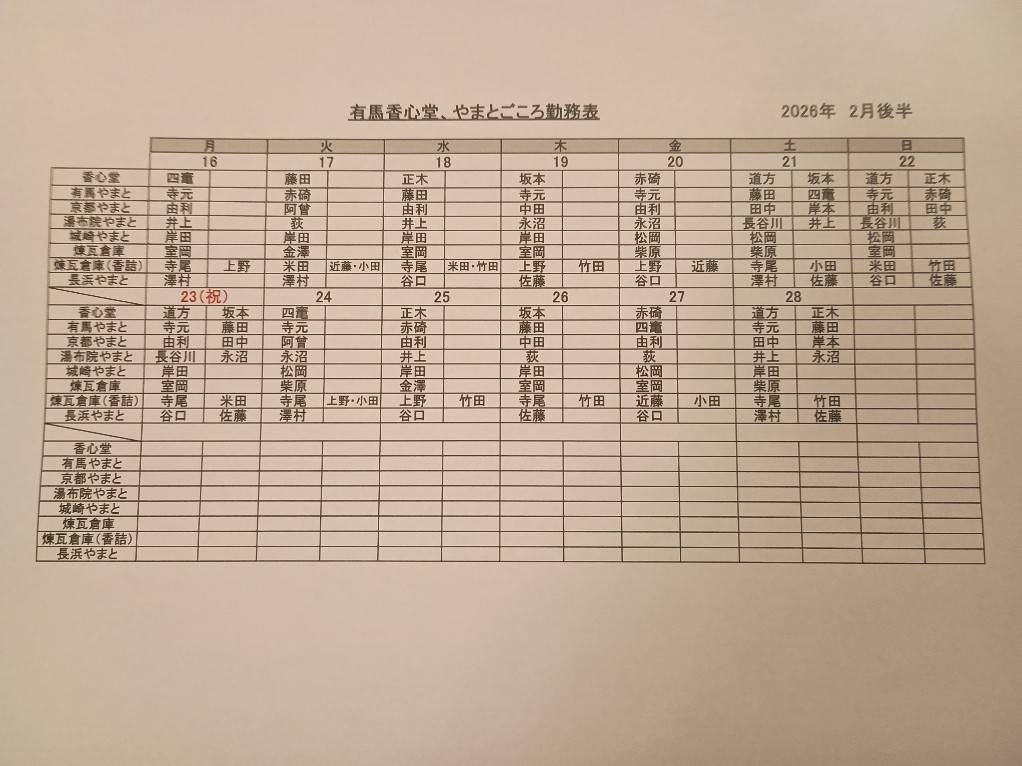 2026年2月後半 シフト