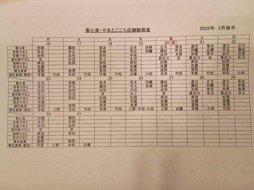 2026年3月 シフト(川越・表参道)