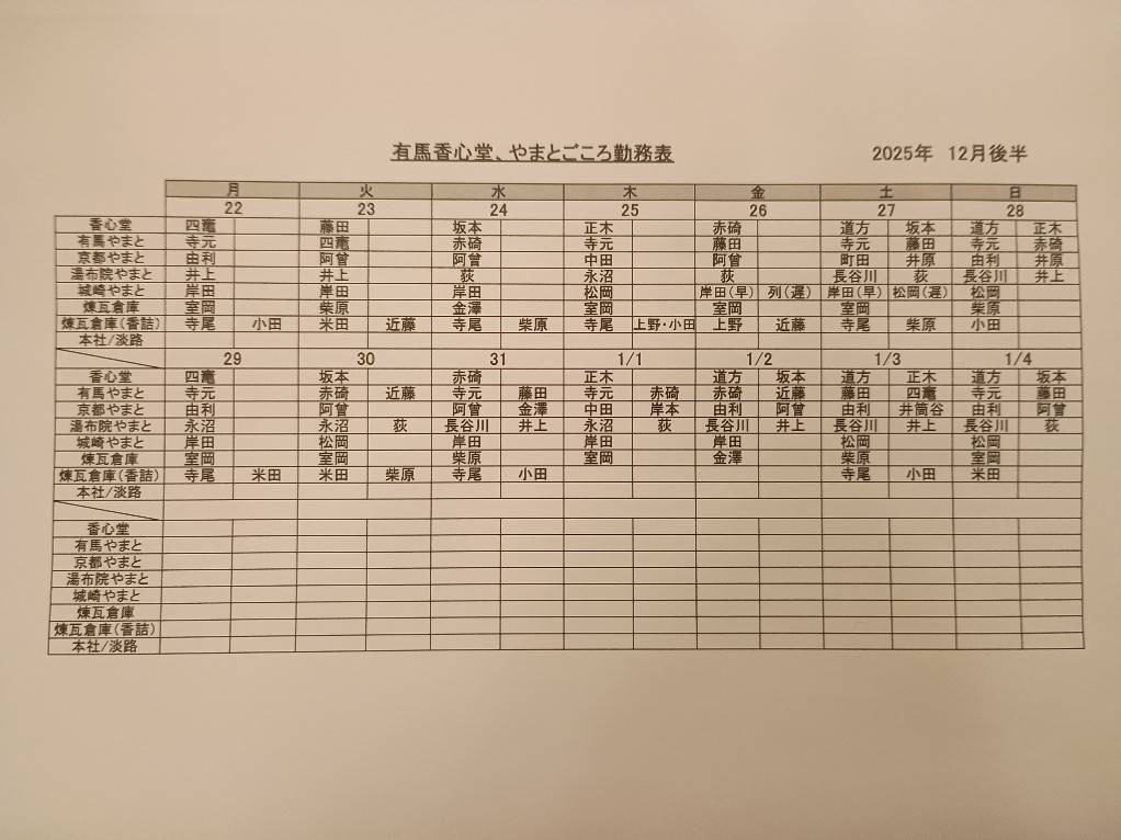 2025年12月後半 シフト