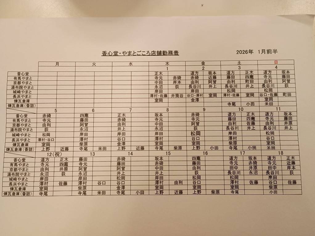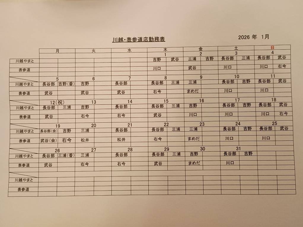 2026年1月 シフト(川越・表参道)