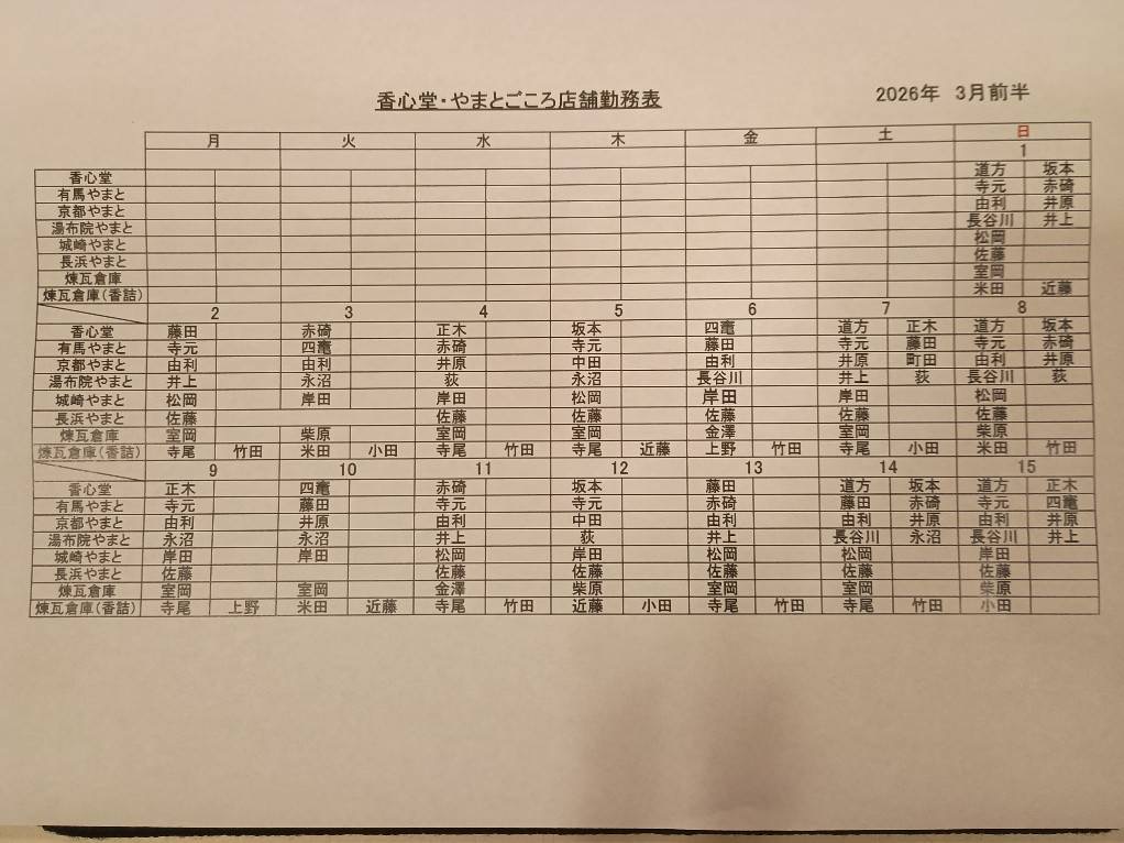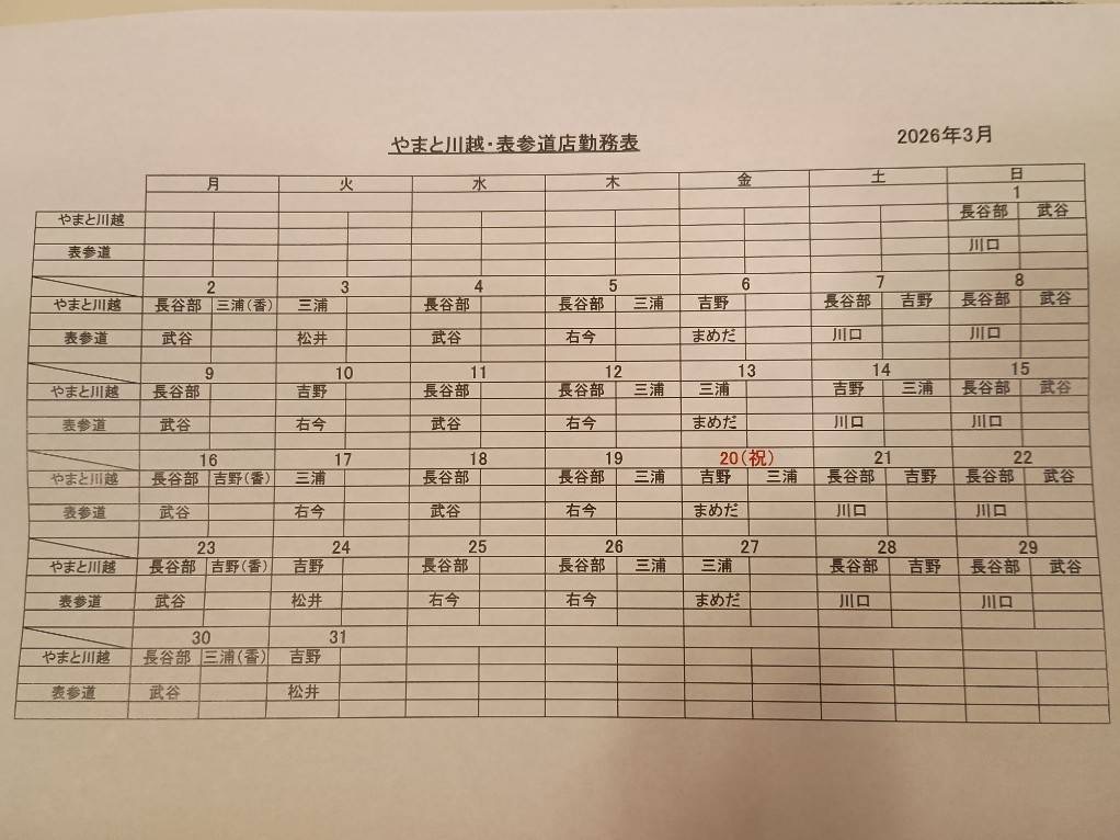 2026年3月 シフト(川越・表参道)